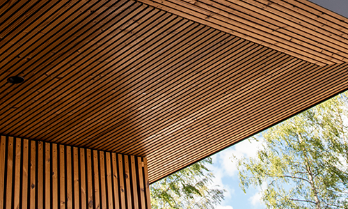 - Natural Wood Exterior Siding/Cladding, especially Ceiling Applications